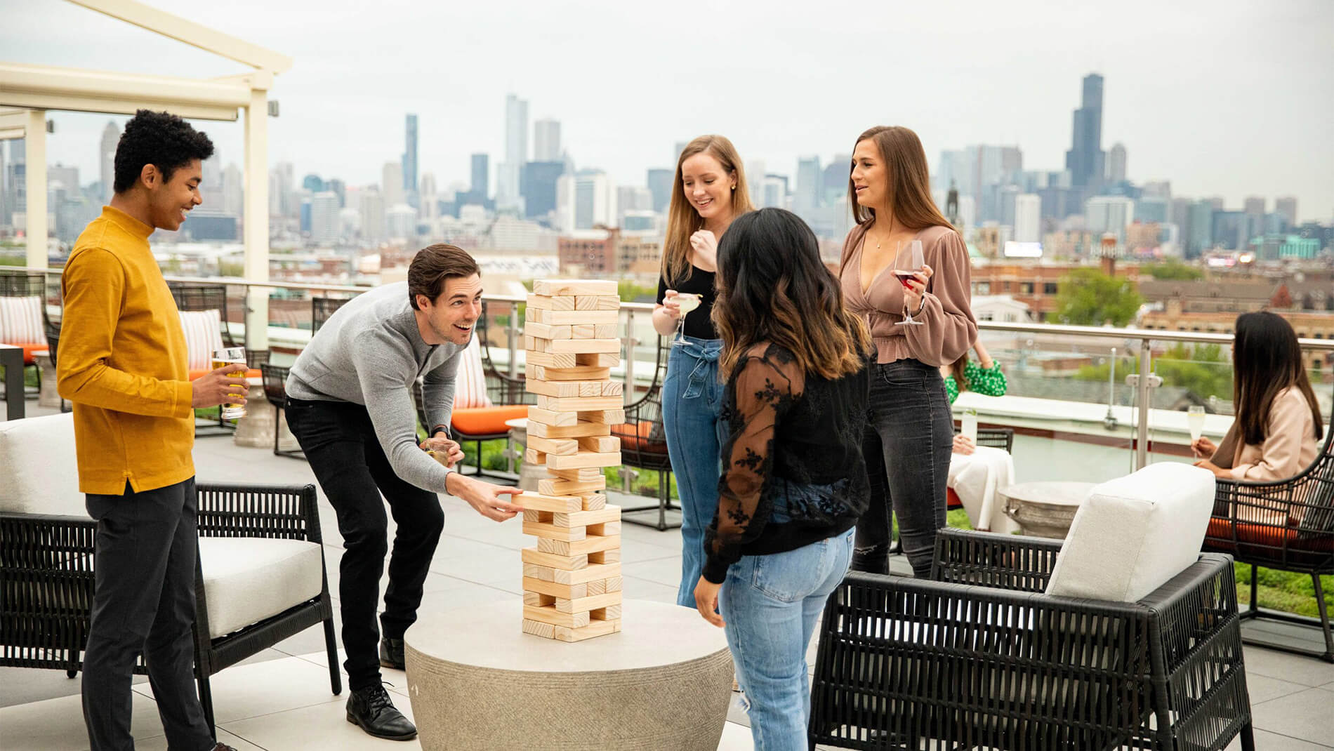 Elevator Pitch: Chic rooftop lounge atop The Wit, blending city views with an elevated nightlife scene and stylish ambiance.